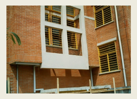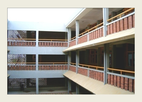 | The Phase II contains the Intro Tech Block, Dining Hall and the Common Facilities Building. The External Works and the sports grounds were done with the Phase II. The circulation, cross ventilation and massing are strong design considerations. The use of bright yellow colour brings out the youthful nature of the project. |